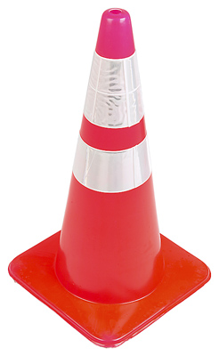 Traditional road cone with reflective sleeve.