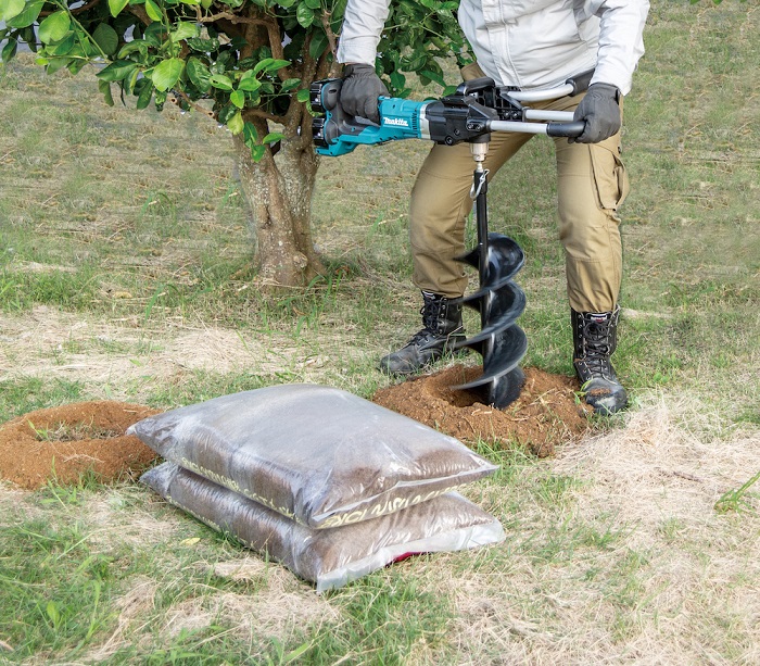 Cordless machine that can bore up to 8" diameter holes for posts with minimum time and effort.